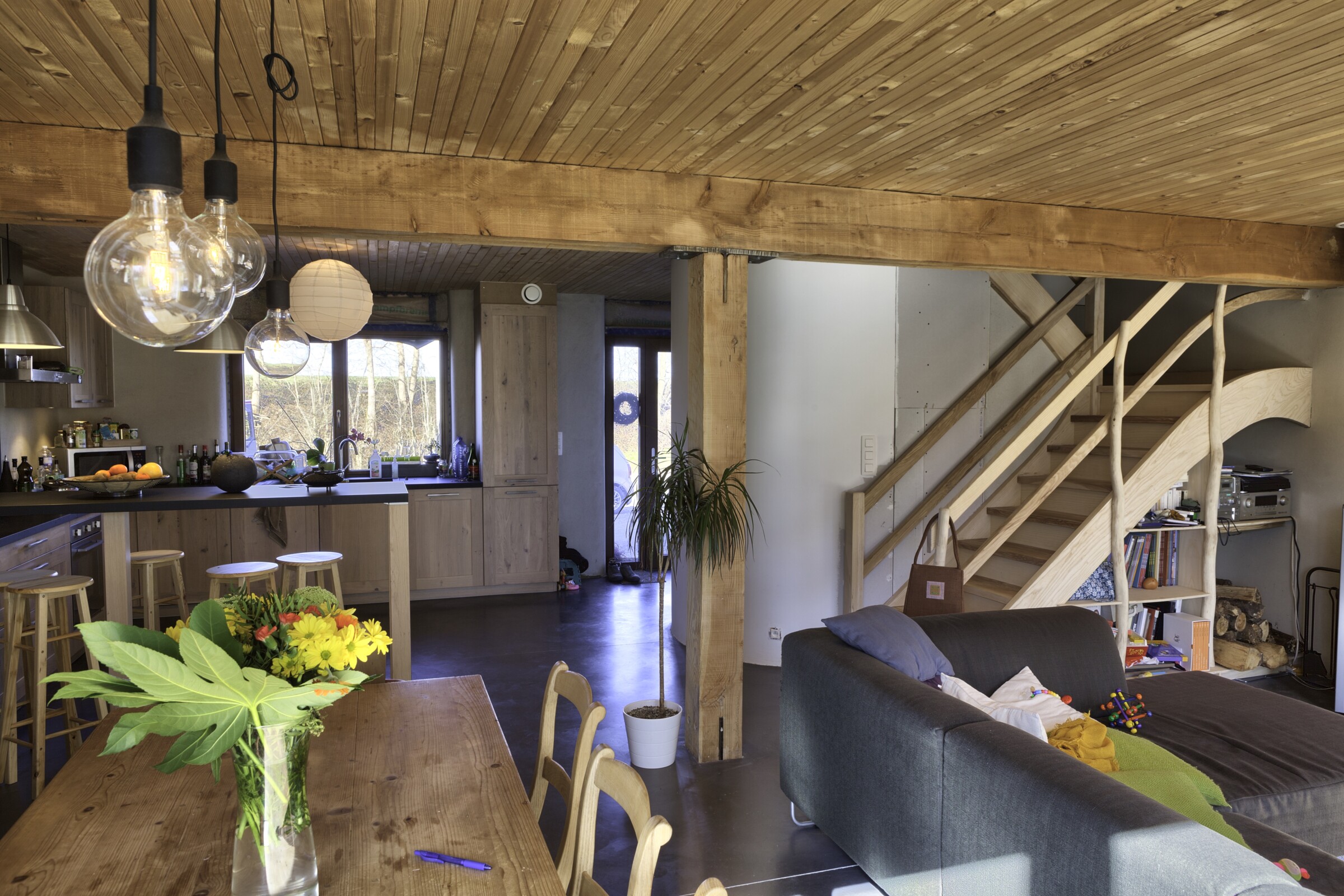 « Il n’y a rien à redire, le produit fini est impeccable et on s’y sent bien dès le premier jour ! Le seul ennui, c’est quand on part en vacances… Avec les arbres qu’on a coupés pour construire les maisons, on a chauffé gratuitement pendant… 4 ans. Maintenant on en a pour 100 euros de bois par famille par an,,, »